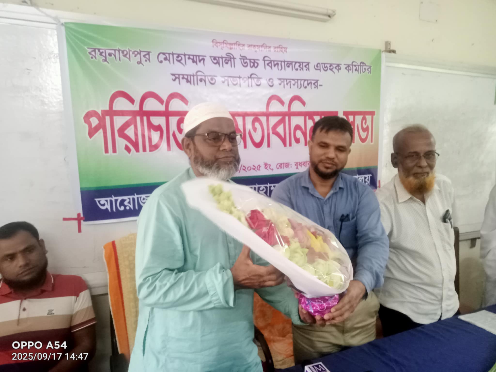 গাইবান্ধা সদর উপজেলার বল্লমঝাড়স্থ রঘুনাথপুর মোহাম্মদ আলী উচ্চ বিদ্যালয়ের এডহক কমিটির সভাপতি ও সদস্যদের পরিচিতি ও মতবিনিময় সভা বিদ্যালয়ের হলরুমে