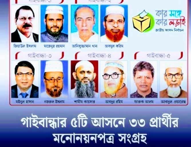 গাইবান্ধার ৫ সংসদীয় আসনে ৩৩ প্রার্থী মনোনয়নপত্র সংগ্রহ